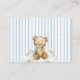 Personalize this adorable light dusty blue, beige, and white "We Can Bearly Thank You Enough!" teddy bear theme baby boy shower diaper raffle ticket style card, 2-sided (3.5x2.5" in size), featuring a sweet watercolor checkerboard balloons and blue diaper over blue ticking pinstripes on the front and a teddy bear wearing a blue bow over stripes on the back side. It's the cutest on-theme way to get lots of diaper and wipe gifts for mommy-to-be! Discover the matching stand alone table sign for the day of, + invitation, books for baby card, teddy grahams guess cards & sign, welcome sign, bingo & game cards, decor & more in the full collection above ♥ Custom design requests, and template questions are always welcome - click the "message" button or email direct (with a quick response time!): contact@figandlilyco.com. Design is lovingly created by Fig and Lily Studios - sending blessings and thanks for being here with us ♥