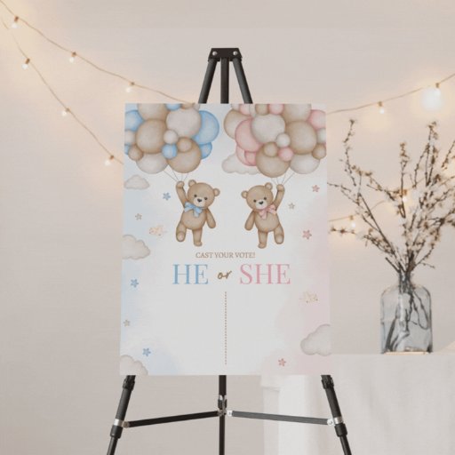 Add a playful touch to your celebration with our adorable Bear Gender Reveal He or She Sign. Perfect for building excitement and capturing the joy of your baby’s big reveal!