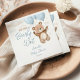 Add a playful and personalised touch to your celebration with these We Can Bearly Wait Baby Shower Napkins! Featuring a cute teddy bear design accented by soft blue balloons and fluffy clouds, these napkins are as charming as they are practical. With a baby boy blue colour palette, they’re perfect for celebrating the arrival or your little one. Customisable with your name and shower date, they’re the perfect finishing detail for your adorable baby shower setup.
