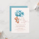 Cute teddy bear and blue balloon baby shower invitation.