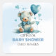 This cute baby shower, we can bearly wait- STICKER design features an adorable watercolor teddy bear with balloons in a heart shape and personalizable blue and black typography.