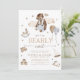 Celebrate the upcoming arrival with this "We Can Bearly Wait" Boy Baby Shower Invitations, a charming ode to woodland wonders and cuddly bears. Crafted with rustic charm, this invitation features an adorable bear cub motif in warm, earthy tones of brown. The cute teddy bear illustration adds a delightful touch, setting the perfect tone for a cosy and heartwarming celebration. Embrace the joyous anticipation with this endearing design, ideal for welcoming the little one into the world. Share the excitement in style, inviting loved ones to join the adventure of the baby shower, filled with bear-themed sweetness and joy.