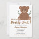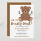 Adorable bear-themed baby shower invitation featuring a charming hand-painted illustration of a sweet cub surrounded by soft greenery and natural foliage. With the playful phrase “We Can Bearly Wait!”, this design creates a warm and cozy feel, perfect for celebrating a baby boy or a gender-neutral baby shower. Ideal for fall gatherings, woodland themes, or nature-inspired celebrations, this invitation adds a touch of rustic charm and cuteness to your special day.