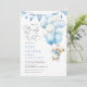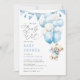 baby boy blue floral theme simple script lettering, we can bearly wait baby shower invitation template. The text and colours can be edited.