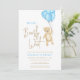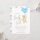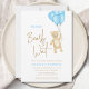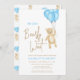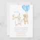 This charming boy's baby shower invitation features watercolor blue balloons and a teddy bear with the words "We Can Bearly Wait" in stylish script typography. It is easily customisable.