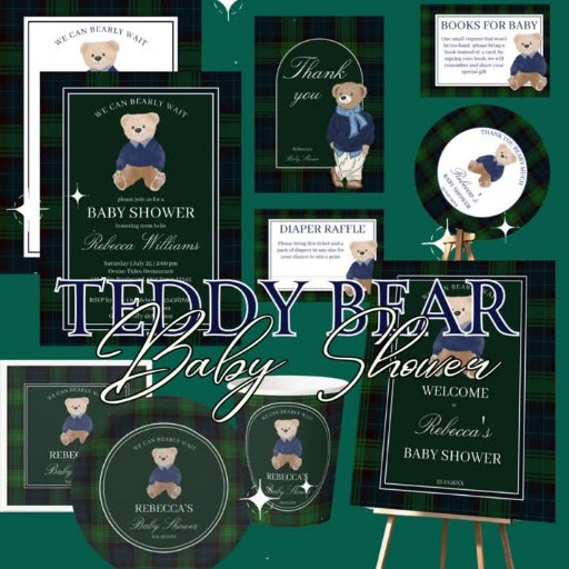 Teddy bear green plaid baby showerDesigned by Ieva Jenciute