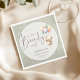 Celebrate the upcoming arrival of a little one with these adorable gender-neutral baby shower napkins. Featuring a cuddly teddy bear floating with pastel balloons and the playful phrase “We can bearly wait,” this design blends cuteness with simplicity for a timeless look. The soft sage green background make it perfect for both baby boys and girls, while the clean typography keeps the layout modern and easy to read. A lovely choice for parents-to-be who want a sweet, charming, and unisex baby shower theme.