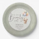 Celebrate the upcoming arrival of a little one with these adorable gender-neutral baby shower plates. Featuring a cuddly teddy bear floating with pastel balloons and the playful phrase “We can bearly wait,” this design blends cuteness with simplicity for a timeless look. The soft sage green background make it perfect for both baby boys and girls, while the clean typography keeps the layout modern and easy to read. A lovely choice for parents-to-be who want a sweet, charming, and unisex baby shower theme.