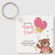 Make your baby girl's shower extra special with these we can bearly wait custom name keychains. Featuring an adorable bear with pink balloons, these keychains can be personalised with thee baby name or each guest's name, creating a meaningful and charming memento. Your guests will cherish this functional accessory as a sweet reminder of the joyous occasion. Thank them for being part of your celebration with these delightful custom keychains that are both cute and practical.
