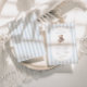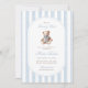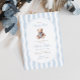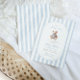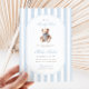 A sweet nod to tradition with a touch of timeless charm. This grandmillennial baby shower invitation features soft blue watercolor stripes, a vintage-style teddy bear, and elegant typography — perfect for celebrating a little gentleman on the way.