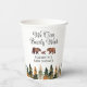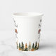 Watercolor pine trees and bear fall themed baby shower paper cups.