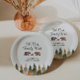 Watercolor pine trees and bear fall themed baby shower paper plates.
