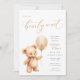 Celebrate the upcoming arrival of a little one with this charming baby shower invitation, featuring a sweet watercolor teddy bear holding a balloon. This cute, gender-neutral design is perfect for any baby shower theme. With delicate script and elegant details, it sets a warm and inviting tone for your celebration. Personalise with all the event details, including the name, date, time, location, and registry information.