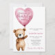 Celebrate the impending arrival of your little one with our adorable "We Can Bearly Wait Girl Baby Shower Invitation." This charming invitation features a sweet teddy bear cub, a cute animal with a pink heart shaped balloon. The watercolor design adds a touch of elegance, while the brown and pink colour palette creates a warm and inviting atmosphere. It also has a vibe of a minimalist woodland forest theme. The shimmering gold glitter stars at the back add a sprinkle of magic to your special day. Get ready for ideas for a beary cute celebration that will fill your heart with joy!