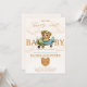 A delightful teddy bear takes the pilot's seat, soaring through a sky of whimsical clouds and gentle snowfall against a serene pastel backdrop. This enchanting design captures the anticipation of your little one's arrival, inviting guests to join in the joyous celebration. Share the magic of this special occasion with an invitation that blends sweetness, charm, and the promise of new beginnings.