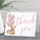 “We can BEARly wait” sets the tone for this adorable baby shower thank you card, perfect for celebrating the mum-to-be and her baby girl. The front features a cute tan teddy bear with a pink bow and the words “Thank You” in pink script.