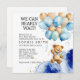 Invite loved ones to celebrate your growing family with this adorable “We Can Bearly Wait” baby shower invitation! Featuring a charming hand-painted teddy bear surrounded by elegant royal blue and gold abstract accents, and festive golden brown and blue balloons, this design is perfect for a classy yet playful celebration.