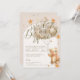 Celebrate your beautiful baby shower in style with these we can bearly wait baby shower invitations. This gender neutral baby shower invite features an adorable brown teddy bear holding a large bunch of balloons in a mix of neutrals and golds, with a gold starry beige background and white arch, finished with classic calligraphy font text that reads "We Can Bearly Wait". Perfect for a gender neutral baby shower!