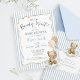 Personalize this adorable neutral light dusty blue, beige, and white "We Can Bearly Wait!" teddy bear theme baby boy shower invitation featuring a sweet watercolor teddy bear holding checkerboard pattern balloons and a hand drawn beige bow frame over blue ticking pinstripes on the front and back sides. It's the cutest way to invite guests to shower the new mommy-to-be with love! Easily add your wording to make it uniquely yours, and order prints + envelopes, or download the printable digital file and print at home! Find the matching diaper raffle card, books for baby card, envelope liner, decor & stationery in the full collection above ♥ Custom design requests, colors, product collection additions, and template questions are always welcome - click the "message" button or email direct (with a quick response time!): contact@figandlilyco.com. Design is lovingly created by Fig and Lily Studios - sending blessings and thanks for being here with us ♥