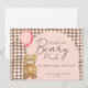 Send a sweet note of gratitude with this We Can Barely Wait Girl Baby Shower thank you card, featuring the phrase “Thank you beary much, for showering us with love.” The text is fully customisable, with space below to personalise with the mama-to-be’s name and shower date. The back is blank, leaving space to write your own personal message. Designed with a charming watercolor teddy bear holding a pink balloon, a soft blush pink arch, and timeless brown gingham plaid, this thank you card perfectly complements your shower theme. It’s a thoughtful way to thank guests while keeping your stationery beautifully coordinated. Pair it with matching invitations, favour signs, and games from the We Can Barely Wait collection for a cohesive and memorable celebration.