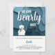 Adorable winter blue baby shower invitation with an illustration of a little polar bear on a gorgeous wavy ombre blue background. Great for boy baby shower parties. The image looks like is in three dimensions but it's just a print. Illustrated and designed by Patricia Alvarez.