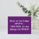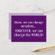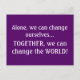 This is a powerful inspirational quote print postcard that says 'Alone, we can change ourselves... TOGETHER, we can change the WORLD!' printed in white letters on a purple background.