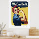 This powerful design features Rosie the Riveter striking her classic pose with a fierce gaze, complemented by the bold text 'We Can Do It' above. The nostalgic colour palette of reds, blues, and yellows enhances its vibrant look, making it perfect for Posters. This is an AI generated image.