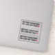 The decal is perfect...it arrived ahead of schedule, was well priced and functions as a nice give away for our customers. It adheres well too. Chandler. Great job...the printing is very clear...
