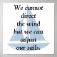 We cannot direct the wind but we can adjust our sails good advise for everyday life.