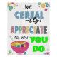 This fun and playful "We Cereal-sly Appreciate You" poster is the perfect way to show appreciation in a lighthearted manner! With vibrant colours and a cute cereal design, it brings a smile to anyone who reads it. Ideal for teachers, classrooms, or as a gift to show thanks and gratitude for someone's hard work.