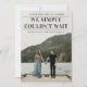 A timely wedding announcement featuring We simply couldn't wait headline. A great way to let loved ones know you've tied the knot. The backside allows for a personalised message to friends and family or can be removed if desired. Click edit to customise.