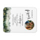 An elegant Wedding Save the Date magnet with watercolor mountains and pine trees and 1 special photo that you can customise with your details.