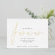 We Decided on Forever Script Save The Date. A minimalist design with the glam of real foil for set script, Forever .Easily personalise with your details. Add your QR code to your wedding website on the back if you wish or delete the sample code if not required.