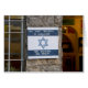 A hand-painted, blue-on-white, sign posted outside a shop in the Israeli town of Rosh Pina. The sign has English-language text reading, WE DON'T BELIEVE IN MIRACLES, WE DEPEND ON THEM" on a representation of Israel's flag.