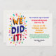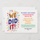 A colourful, grunge invitation with oversized font saying "WE DID IT". Shown as a prom invitation, it's perfect for graduation parties and other milestone celebrations. (Image by Freepik). The card is easy to customise with your wording, font and font colour. Not exactly what you're looking for? All our products can be custom designed to meet your needs at no extra charge. Simply contact us heartfelthelper@gmail.com. Coordinating products available at your request at no additional charge.