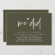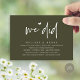 Mark the beginning of your forever with elegance using our contemporary rustic olive green themed wedding elopement reception dinner party celebration invitation card, "We did". Perfect for couples extending their joyous occasion, this invitation exudes sophistication with a hint of playfulness, setting the stage for a memorable event. Adorned with a timeless modern script design theme, it adds a touch of refined charm to your festivities. Crafted by TeeshaDerrick, this invitation promises to beautifully capture your love story.
