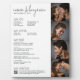 We Do, We Drink, We Eat and We Dance theme makes this a casual and modern look for a wedding sign. It includes several details regarding the wedding including a timeline, menu, drink list and qr code for photos. A clean design with a classic sans serif font and a large script font as an accent. Add 4 photos along with a qr code to your wedding site details. A wedding poster with simple text and no extra graphics.
