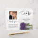 This beautiful wedding program is both modern and elegant. The DIY folded design features modern script lettering on the front reading "we do" with the names of the couple and wedding date/location. There is a photo of a beautiful amethyst purple coloured rose reflecting in a pool of water with waves and ripples. The inside has the same flower as a watermark background with space for the ceremony and bridal party details. The back features your photo and a customisable thank you note. Sophisticated, stylish, and chic, these programs will add class and style to your wedding celebration.