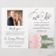 This beautiful wedding program is both modern and elegant. The DIY folded design features modern script lettering on the front reading "we do" with the names of the couple and wedding date/location. There is a photo of a beautiful long-stemmed blush pink rose reflecting in a pool of water with waves and ripples. The inside has the same flower as a watermark background with space for the ceremony and bridal party details. The back has your photo, along with space for a customizable thank you note, and a memorial note to recognize lost loved ones. Sophisticated, stylish, and chic, these programs will add class and style to your wedding celebration.