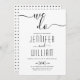 "We do" cursive script handwritten style calligraphy black and white wedding invitation. The back includes a black and white geometric pattern.