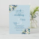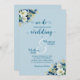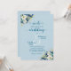 An elegant wedding invitation with dusty blue gold glitter flowers and elegant calligraphy that you can customise with your details.