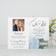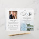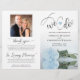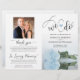 This beautiful wedding program is both modern and elegant. The DIY folded design features modern script lettering on the front reading "we do" with the names of the couple and wedding date/location. There is a photo of a beautiful long-stemmed light dusty blue coloured rose reflecting in a pool of water with waves and ripples. The inside has the same flower as a watermark background with space for the ceremony and bridal party details. The back has your photo, along with space for a customisable thank you note, and a memorial note to recognise lost loved ones. Sophisticated, stylish, and chic, these programs will add class and style to your wedding celebration.