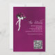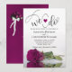 This beautiful wedding invitation is romantic, playful, and stylish. It features a fun title with a cute heart and modern script lettering reading "we do" at the top, with all the details below. At the bottom is a gorgeous single long-stemmed magenta plum, cassis purple, or berry coloured rose lying on its side reflecting or mirrored in a pool of water. The back is a marbled magenta purple colour with a bouquet of roses tied with a white satin bow. There is a heading reading "the details" with room for a short note and a customisable QR Code to direct your guests to a website with more information and/or to RSVP online. Classy, elegant and sophisticated, this invitation is the perfect way to invite your friends and family to share in your joy on your special day!