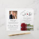 This beautiful wedding program is both modern and elegant. The DIY folded design features modern script lettering on the front reading "we do" with the names of the couple and wedding date/location. There is a photo of a beautiful long-stemmed red rose reflecting in a pool of water with waves and ripples. The inside has the same flower as a watermark background with space for the ceremony and bridal party details. The back has your photo, along with space for a customisable thank you note, and a memorial note to recognise lost loved ones. Sophisticated, stylish, and chic, these programs will add class and style to your wedding celebration.