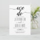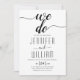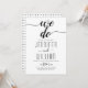 "We do" elegant cursive script handwritten style calligraphy black and white wedding invitation. The back includes a black and white geometric pattern.