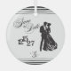This elegant double sided flat save the date keepsake ornament is available is all shapes and sizes. This unique ceramic save the date keepsake ornament makes the perfect holiday gift for friends and family involved in the planning of your wedding. Give as a parent's gift, bridal party keepsake, or as a way to surprise everyone and announce your engagement at your holiday gatherings. Featuring all custom elements; from the couple silhouette, to the date stamp and monogram designed specifically for you to use throughout your wedding suite and day of stationery this is a spectacular memento of this very special time in your lives. This extravagant Save the Date is stunning in crisp black and white. This Save the Date Design is part of our Tuxedo Collection setting the stage for the fairy tale wedding of your dreams and an event your guests will never forget. Design your own custom elements or contact PK Paperie prior to placing your order and we will design them for you according to your specifications. At only $50 for up to 5 Customs Elements this is a bride's dream come true. These custom features will be delivered via digital download and are exclusively licensed for your use across your entire print suite and beyond. For beautiful keepsakes, signatures on thank you cards, monograms for towels or mailboxes, wax stamps, and more you will use these digital assets long after the cake is cut and the bouquet is tossed. PK Forever Yours Paperie predicts that keepsake Save the Dates and Invitations in ceramic, marble, acrylic, metal, or even wood will be a huge trend for the 2026-27 wedding season.