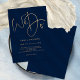 We Do Gold Script Navy Blue Wedding. A simple yet elegant design with gold typography on a classy navy blue background. Stylish set script We Do takes centre stage at the top. The rest of the text you can easily personalise. Text and background colours can be changed if you wish to better suit your wedding theme via the customise further option.
