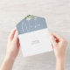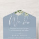 All-in-one dusty blue wedding invitation featuring floral greenery and elegant typography. The invitation includes a perforated RSVP card with your wedding website QR code and details. Designed by Thisisnotme©