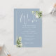 This elegant dusty blue botanical greenery floral wedding invitation can be personalised with your information in chic typography with your wedding website details and your QR code on the reverse. Designed by Thisisnotme©