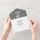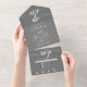 "We do" elegant grey and white cursive script handwritten style calligraphy wedding all in one invitation.